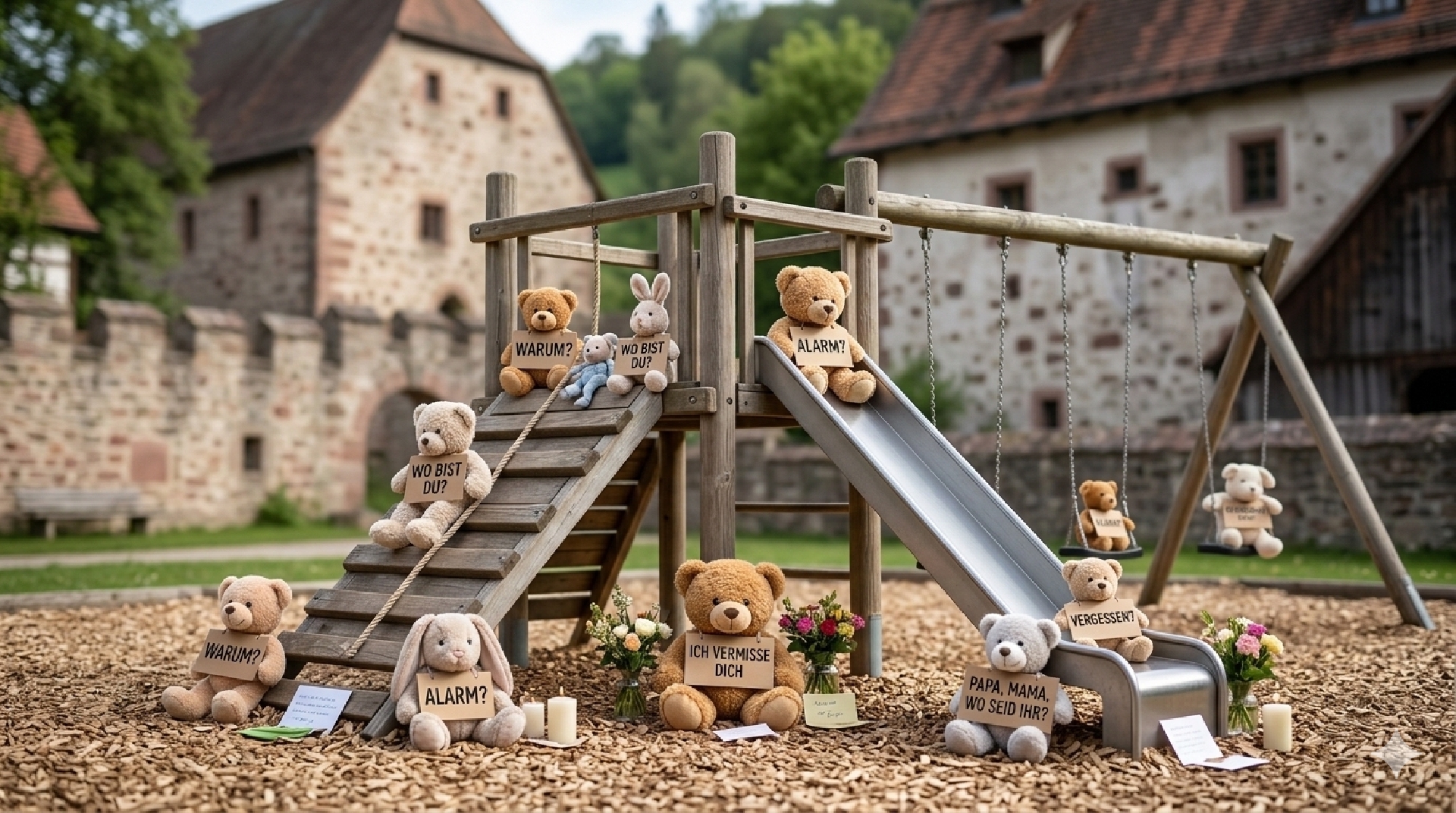 Für diese Aktion werden Plüschtiere als symbolische Stellvertreter für Kinder verwendet. Sie stehen für Kinder, die in familiären Konflikten oder Trennungssituationen den Kontakt zu einem Elternteil verlieren oder nur noch eingeschränkt erleben können. Viele dieser Situationen bleiben im Alltag unsichtbar – genau darauf soll dieses Mahnmal aufmerksam machen.